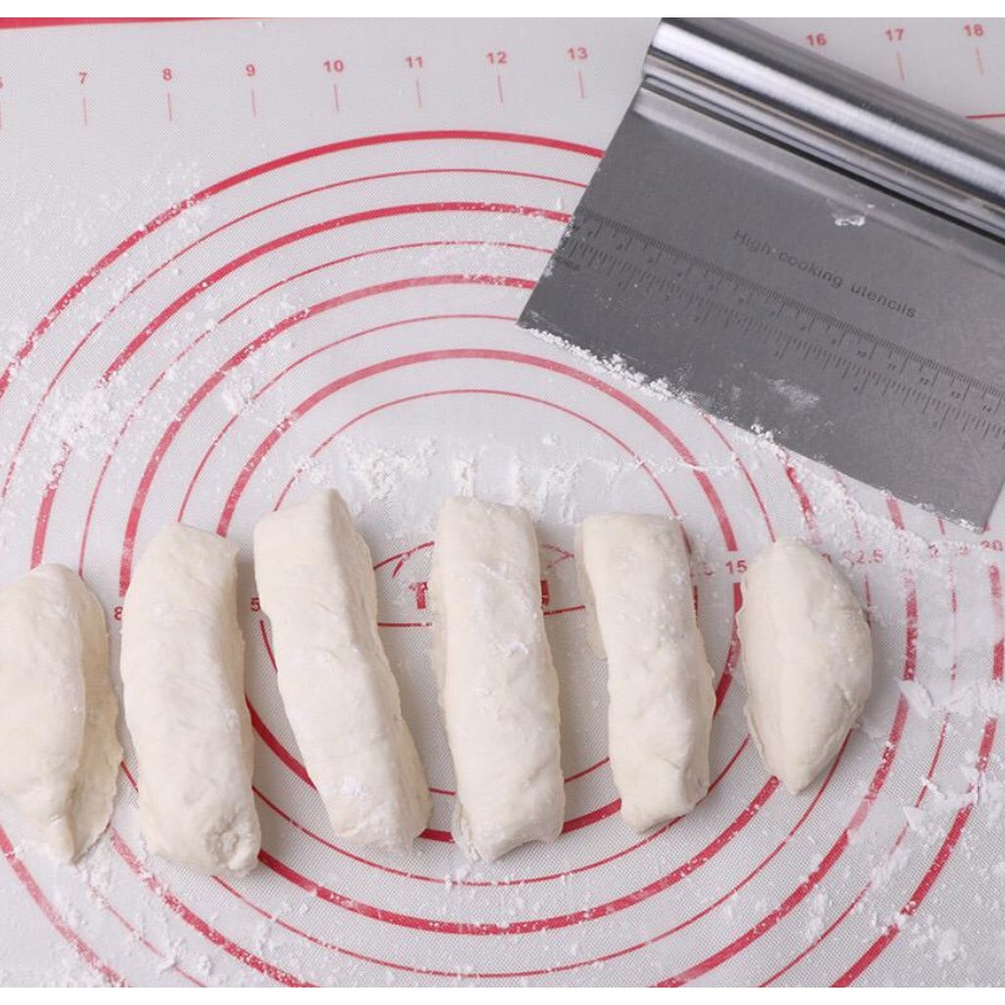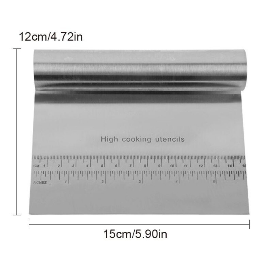 DOUGH CUTTER / PASTRY SCRAPPER Stainless Steel Dough Cutter 15CM This scrapper is very useful for the purposes of cutting your dough in the kitchen or in your bakery. Material made of stainless steel which connects together, making this scrapper very strong. The handle is also very comfortable to use. Product dimensions: Overall height: 12CM Scrapper height: 9.2CM Width: 15Cm Handle diameter: 2.5CM Scrapper material: Thickness
